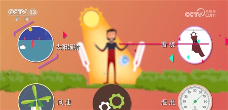 原來,人體對(duì)溫度的感覺還受到氣溫本身之外多種因素的影響,如濕度、風(fēng)速、太陽輻射、著裝甚至心情等。例如,當(dāng)氣溫35.6℃時(shí),如果相對(duì)濕度為45%,人體就會(huì)感受到40℃的高溫,如果相對(duì)濕度達(dá)到65%,體感溫度將接近50℃。持續(xù)的高溫天氣會(huì)使人體感到不適,工作效率降低,中暑、腸道疾病和心腦血管疾病等的發(fā)病率增多。
