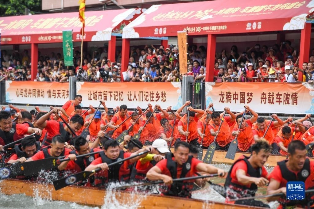 賽龍奪錦代表一種人生態(tài)度,更有著豐富的精神內涵。對于車陂這樣的“城中村”而言,族人在端午回村里劃龍舟、吃龍船飯。龍舟如今既是留住文化記憶的重要載體,更是新都市如何留住老鄉(xiāng)愁的一份珍貴答卷。新華社記者 劉大偉 攝