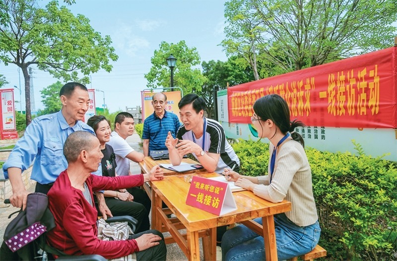 2023年5月24日,福建省莆田市城廂區(qū)紀(jì)委監(jiān)委在東海鎮(zhèn)大埔村開展“我聽群眾說(shuō)訴求”一線接訪活動(dòng)。 求是圖片 吳震/攝