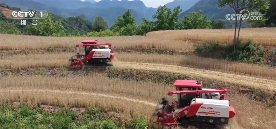 此外,還有更多適應(yīng)性能強(qiáng)的農(nóng)機(jī)裝備開進(jìn)了以往機(jī)收率不高的地塊。在甘肅省徽縣,15萬畝小麥已陸續(xù)成熟?;湛h地處秦巴山,耕地大多以坡地為主。為了讓小麥顆粒歸倉,當(dāng)?shù)亟M織體型小、能爬坡過坎的履帶式聯(lián)合收割機(jī)開展機(jī)收作業(yè),機(jī)收率達(dá)到95%以上,打通了農(nóng)機(jī)進(jìn)田“最后一公里”的難題。
