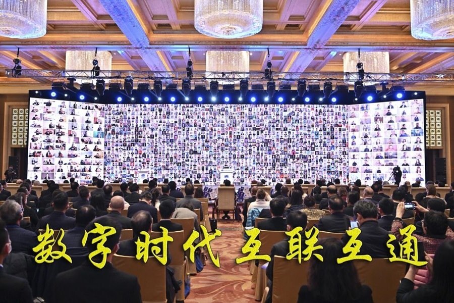 在北京舉行的世界數(shù)字教育大會(huì)上,全球萬名師生云合奏合唱(2023年2月13日攝)。世界數(shù)字教育大會(huì)以“數(shù)字變革與教育未來”為主題,超過130個(gè)國家和地區(qū)的代表參會(huì)。