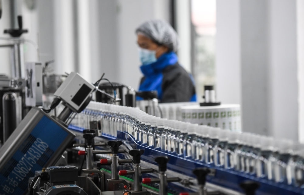 在浙江淳安經(jīng)濟開發(fā)區(qū)一家水飲料企業(yè)拍攝的瓶裝水生產(chǎn)線(2020年12月8日攝)。新華社記者 徐昱 攝