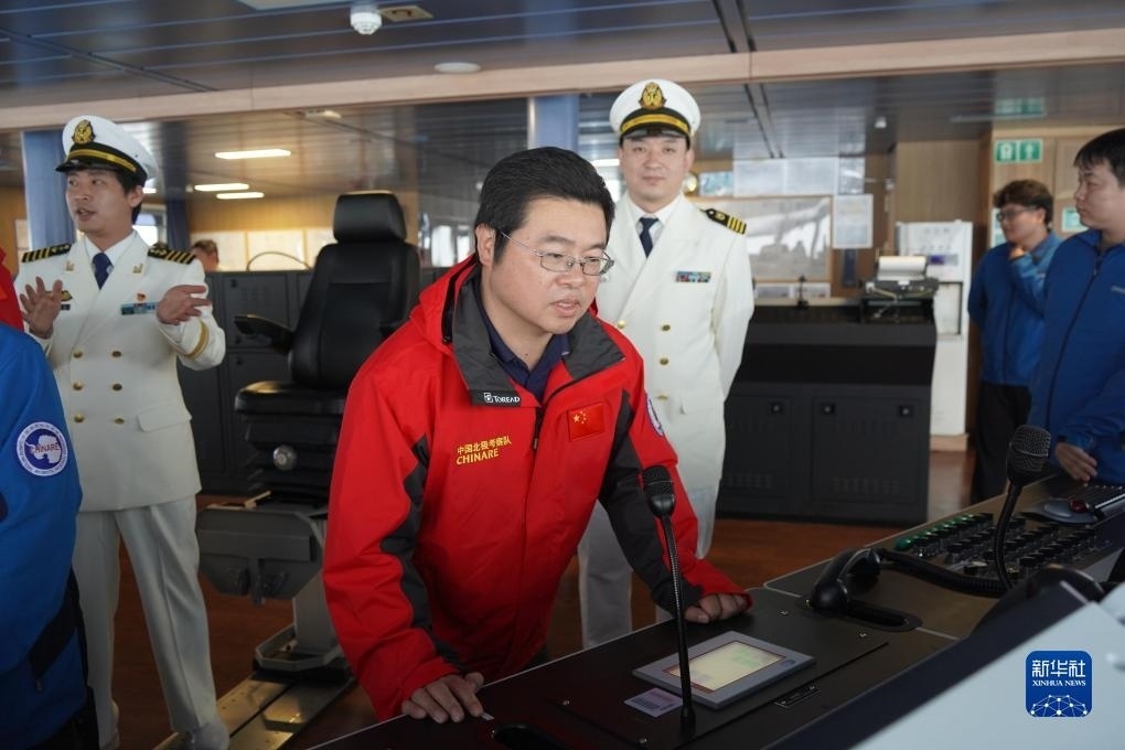 報告聲響徹駕駛臺,“雪龍2”號船長肖志民旋即拉響汽笛。接著,“雪龍2”號停止前行,中國第13次北冰洋科學考察隊領隊王金輝走向廣播臺,通過全船廣播宣告——