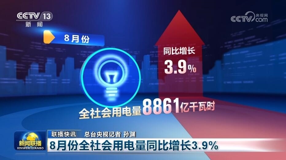 8月份全社會(huì)用電量同比增長3.9%