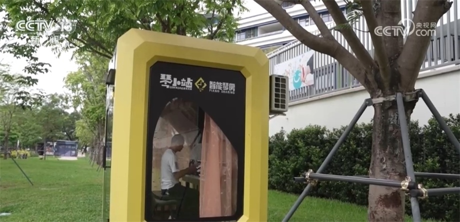 總臺央視記者 喬亞美:在深圳的街頭,我們發(fā)現(xiàn)了一些像我身后這樣的小型智能琴房,我們了解到,像這樣的智能琴房只需要通過小程序或者手機掃碼提前預約就可以免費使用了,我已經提前預約了這會兒的時間,我們一起去體驗一下。