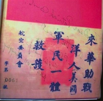 當(dāng)時,每名飛虎隊(duì)隊(duì)員走向戰(zhàn)機(jī)時,都深知自己或許永不能返航。他們身上都帶著寫有“來華助戰(zhàn)洋人,軍民一體救護(hù)”的“血符”,這也是飛虎隊(duì)隊(duì)員與中國軍民之間的生死契約,一旦發(fā)現(xiàn)有落難的美軍飛行員,大家會不惜代價(jià),全力救助。