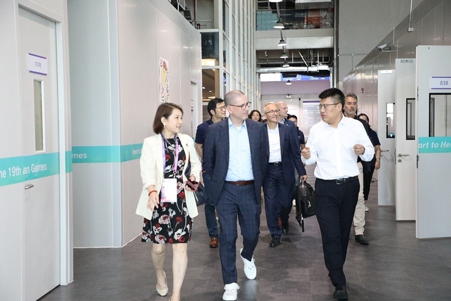 9月18日下午,國際奧委會首席信息科技官艾拉里奧·孔納一行考察杭州亞運(yùn)會信息技術(shù)指揮中心。(圖片來自杭州亞運(yùn)會官網(wǎng))