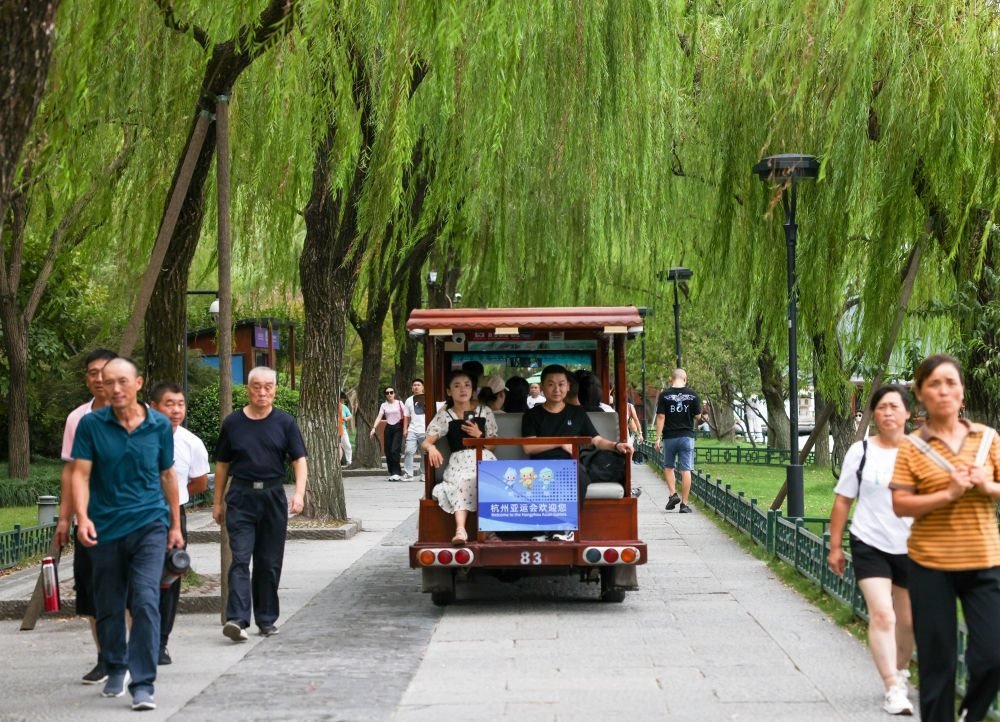9月20日,游客乘坐杭州西湖景區(qū)觀(guān)光車(chē)游覽。新華社記者顏麟蘊(yùn) 攝