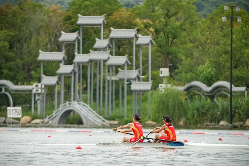 9月20日,杭州亞運(yùn)會(huì)賽艇項(xiàng)目預(yù)賽比賽在浙江省杭州市富陽(yáng)水上運(yùn)動(dòng)中心開(kāi)賽。新華社記者 江漢 攝