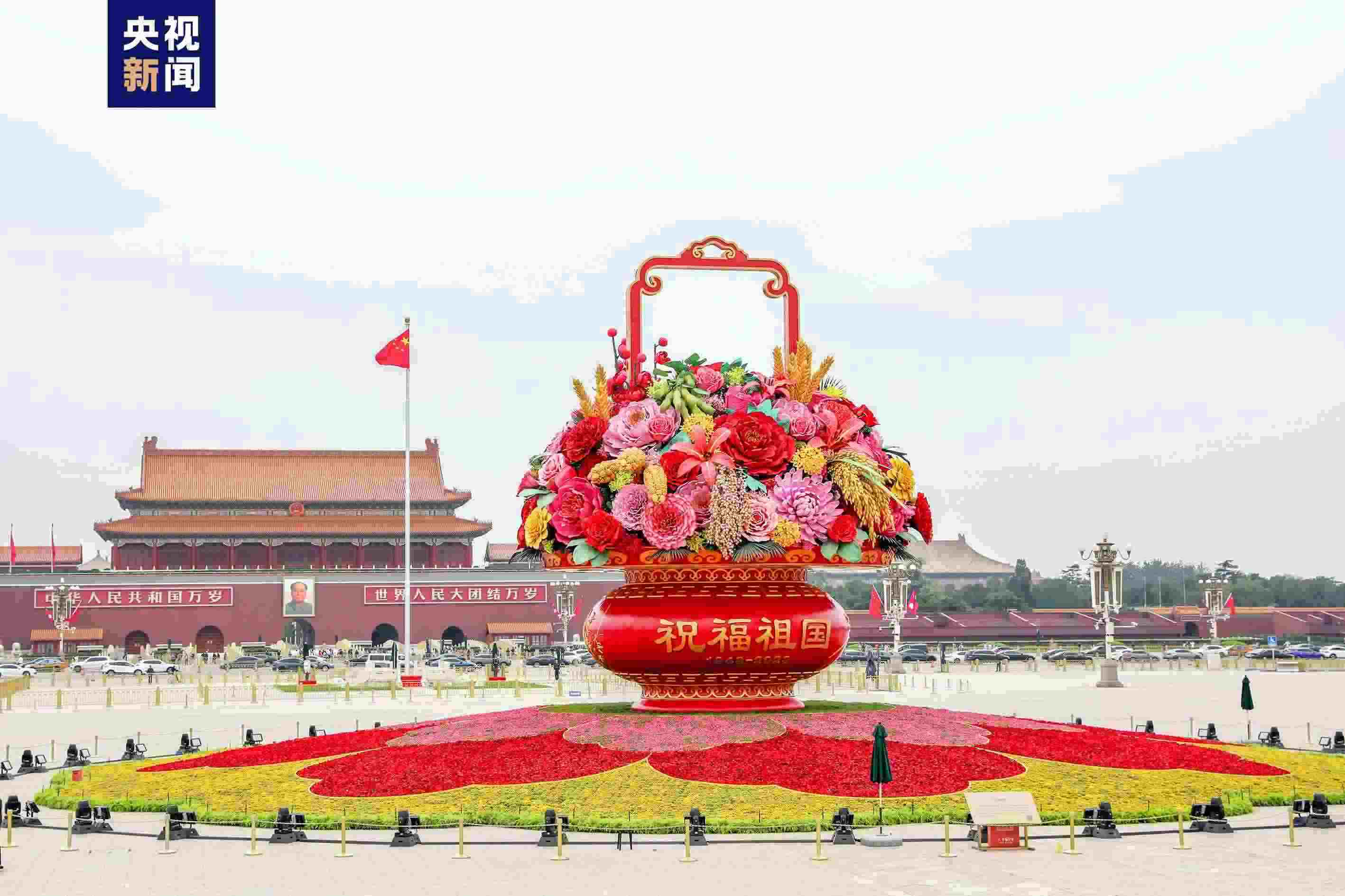 記者從北京市園林綠化局了解到,9月25日,“祝福祖國(guó)”巨型花籃亮相天安門(mén)廣場(chǎng)。長(zhǎng)安街等重要區(qū)域綠化布置也同期完工。