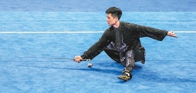 9月25日,武術(shù)男子太極拳太極劍全能決賽,中國(guó)體育代表團(tuán)選手高浩楠在比賽中。記者 厲衍飛攝