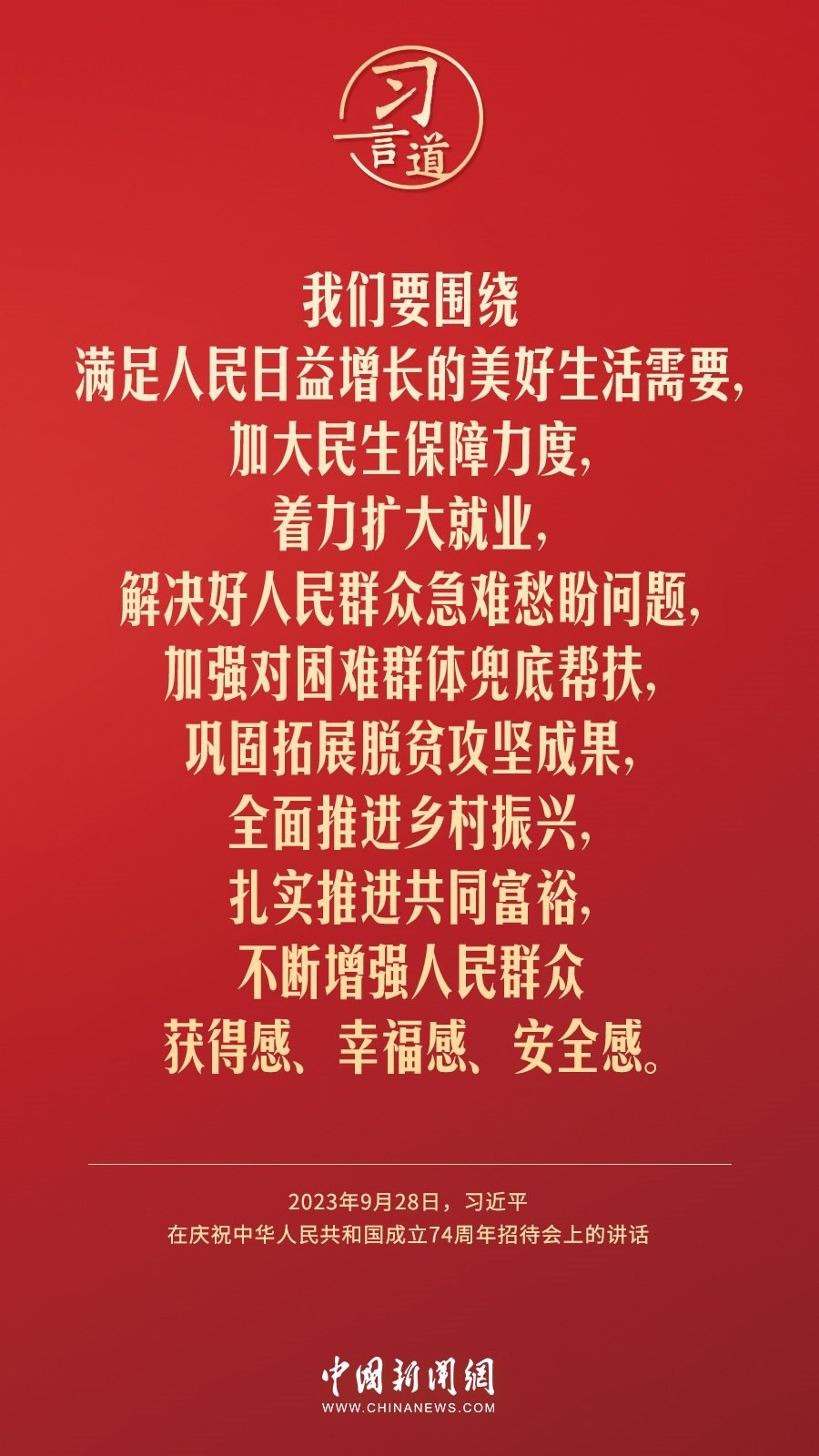 慶祝中華人民共和國成立74周年招待會(huì)28日晚在人民大會(huì)堂舉行。中共中央總書記、國家主席、中央軍委主席習(xí)近平出席招待會(huì)并發(fā)表重要講話。他強(qiáng)調(diào)——