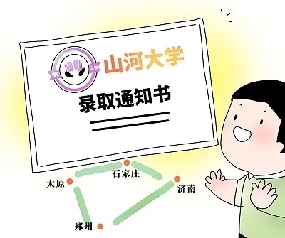 網(wǎng)友隨后設(shè)計(jì)出“山河大學(xué)”的“官網(wǎng)、?;铡⑿?nèi)建筑、錄取通知書”等,喊出“三年超清華,五年趕北大”……該話題引發(fā)大量網(wǎng)友熱議,吐槽“建校當(dāng)天該有的都有了,就是沒有學(xué)?!?。