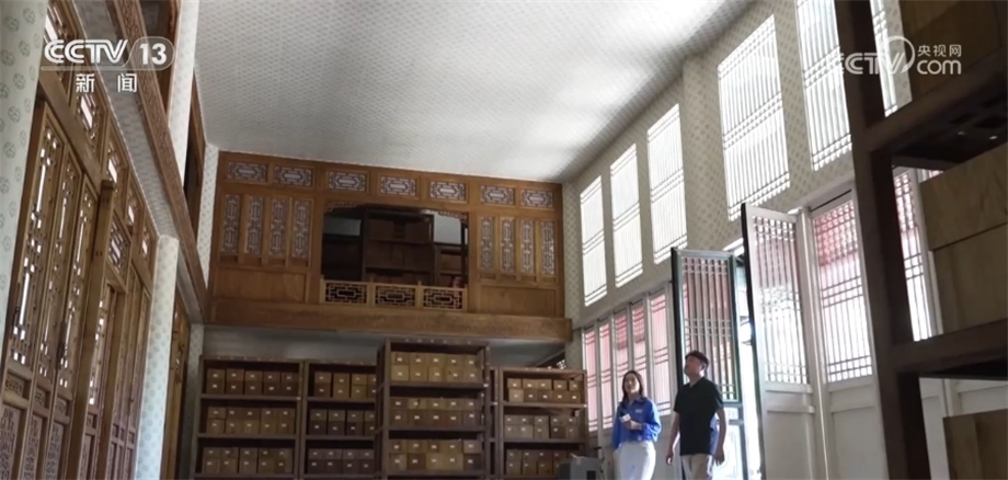 總臺記者 楊海靈:進(jìn)來就能明顯感覺到這是一個(gè)藏書閣,可以說這是當(dāng)年皇家專用圖書館,能夠看到圖書館有放書的地方,那么當(dāng)年在這兒有沒有開辟讀書的區(qū)域??