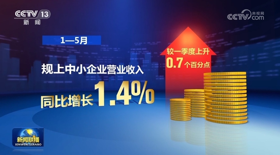 1—5月,規(guī)上中小企業(yè)營業(yè)收入同比增長1.4%,較一季度上升0.7個(gè)百分點(diǎn)。1—5月,“小巨人”、專精特新企業(yè)營收利潤率分別為9.9%、7.1%,比規(guī)上工業(yè)企業(yè)分別高4.7個(gè)、1.9個(gè)百分點(diǎn)。