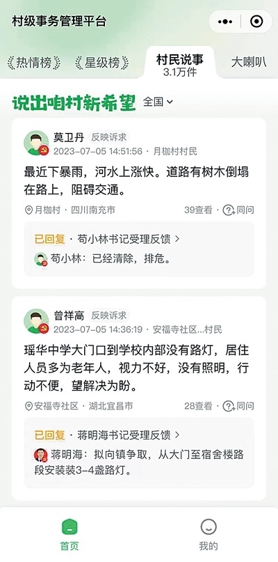 “老百姓把遇到的問題發(fā)布,我們看到后及時回復、解決,大大提高了工作效率?!笔孳娬f,他已經(jīng)養(yǎng)成習慣,每天都會看看村民在小程序說了啥事。