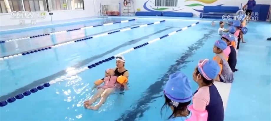 在德州市天衢新區(qū)長河小學(xué)東七校區(qū)的游泳館內(nèi),二年級的學(xué)生正在專業(yè)教練的看護(hù)下測試防溺水的漂浮技能。該校3100余名學(xué)生在本學(xué)期都完成了防溺水初級階段的培訓(xùn)。