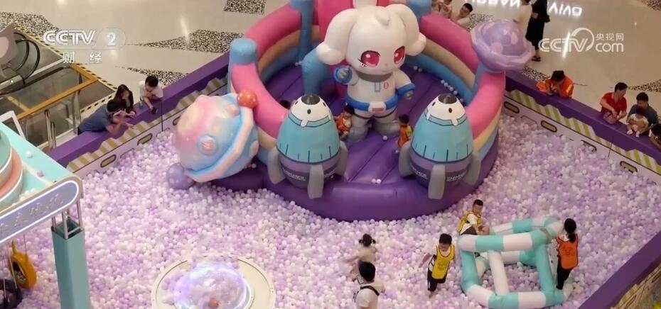 上海某商場(chǎng)運(yùn)營經(jīng)理 趙佳麗:我們會(huì)在暑假檔的時(shí)候,在中庭引入一些比較熱門的IP(知識(shí)產(chǎn)權(quán))游玩設(shè)施。另外,因?yàn)槿龢鞘莾和瘶I(yè)態(tài),所以全年都會(huì)安排一些固定的互動(dòng)點(diǎn)來供周邊的家庭游玩。