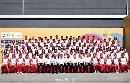 ·成都大運(yùn)會中國大學(xué)生體育代表團(tuán)成立,中國代表團(tuán)由700多人組成,其中411名運(yùn)動員將參加全部18個大項(xiàng)的角逐,實(shí)現(xiàn)了“滿項(xiàng)報名”的目標(biāo)。