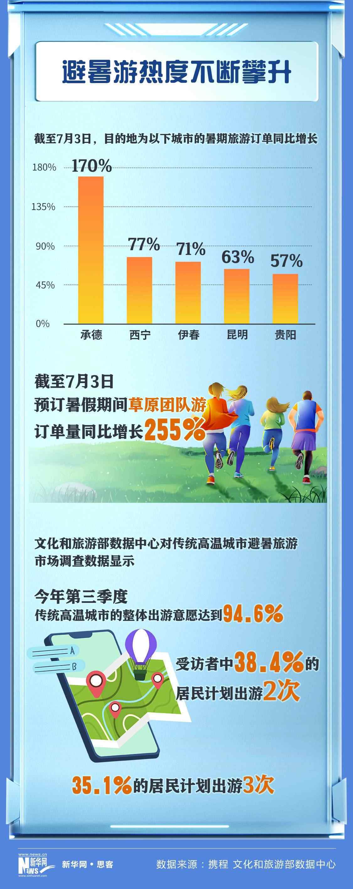 攜程數(shù)據(jù)顯示,截至7月3日,目的地為承德、西寧、伊春、昆明和貴陽(yáng)的暑期旅游訂單同比分別增長(zhǎng)170%、77%、71%、63%和57%。草原游也是廣受歡迎的避暑旅游主題,截至7月3日,預(yù)訂暑假期間草原團(tuán)隊(duì)游的訂單量同比增長(zhǎng)255%。