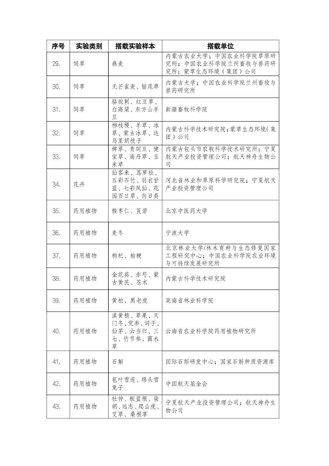 央視網(wǎng)消息:據(jù)中國載人航天公眾號消息,7月19日,中國載人航天工程辦公室公布神舟十六號載人飛船航天育種實驗項目清單,詳情如下: