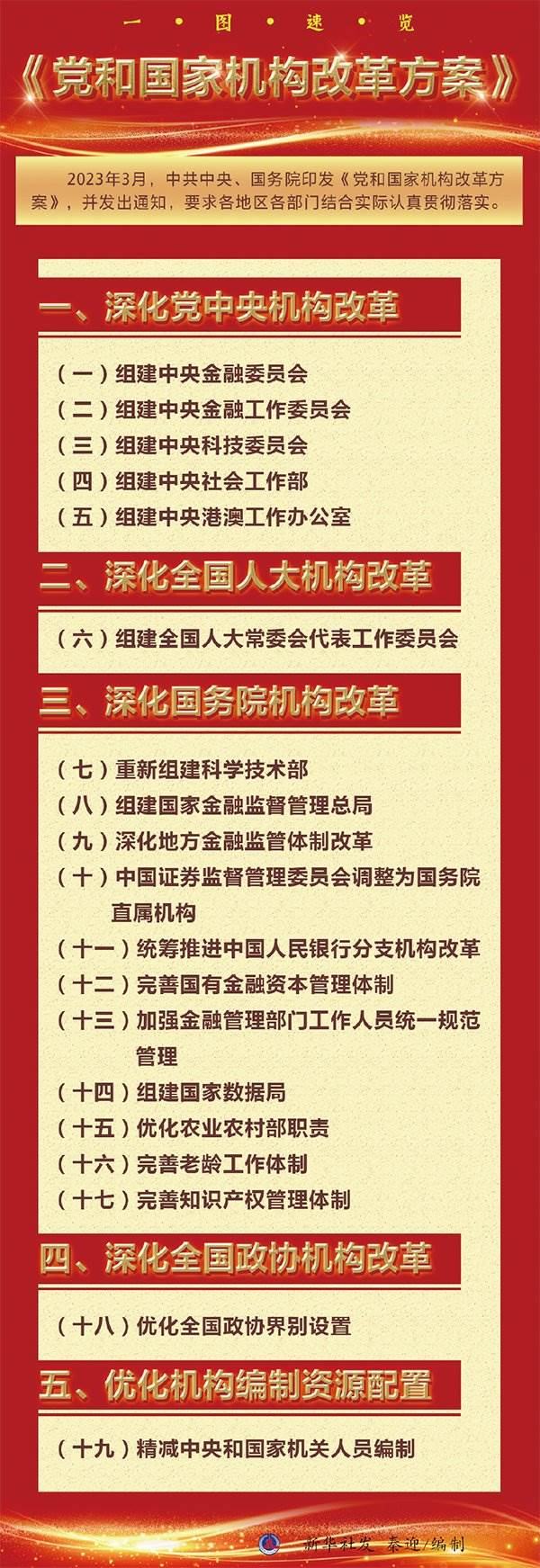 “這次機(jī)構(gòu)改革,是在黨的十九屆三中全會(huì)以來(lái)黨和國(guó)家機(jī)構(gòu)職能實(shí)現(xiàn)系統(tǒng)性、整體性重構(gòu)基礎(chǔ)上推進(jìn)的,同時(shí)也是在黨的二十大對(duì)今后5年乃至更長(zhǎng)時(shí)期黨和國(guó)家事業(yè)發(fā)展作出戰(zhàn)略部署的背景下研究謀劃的。”