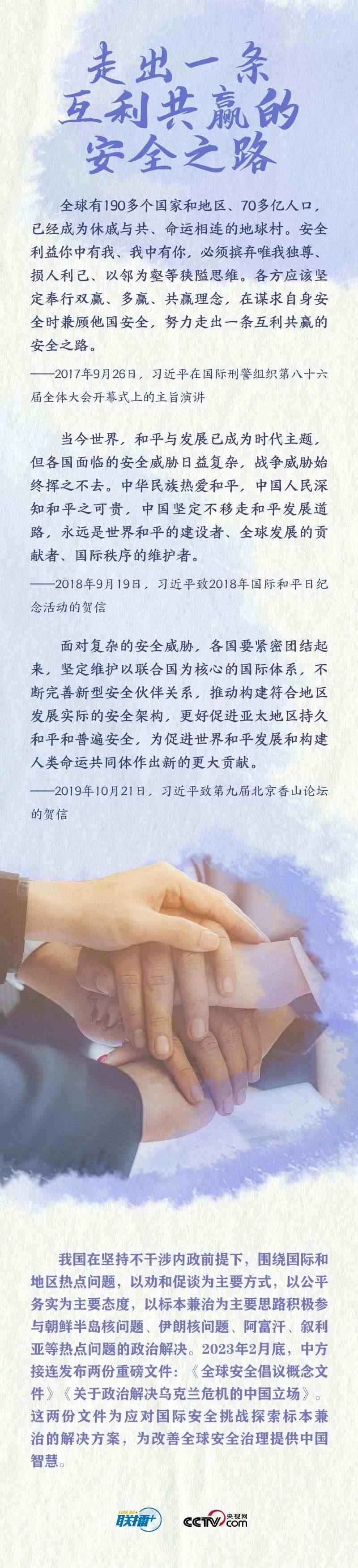 從2014年在亞信第四次峰會(huì)上提出亞洲安全觀,到2016年在二十國集團(tuán)杭州峰會(huì)期間闡述中國的新安全觀,從2017年在聯(lián)合國日內(nèi)瓦總部闡述如何建設(shè)持久和平、普遍安全的世界,到2022年提出全球安全倡議,習(xí)近平主席深刻洞察世界發(fā)展大勢,不斷發(fā)展和完善具有中國特色的安全理念,為破解全球安全困境指明前進(jìn)方向、明確合作路徑。