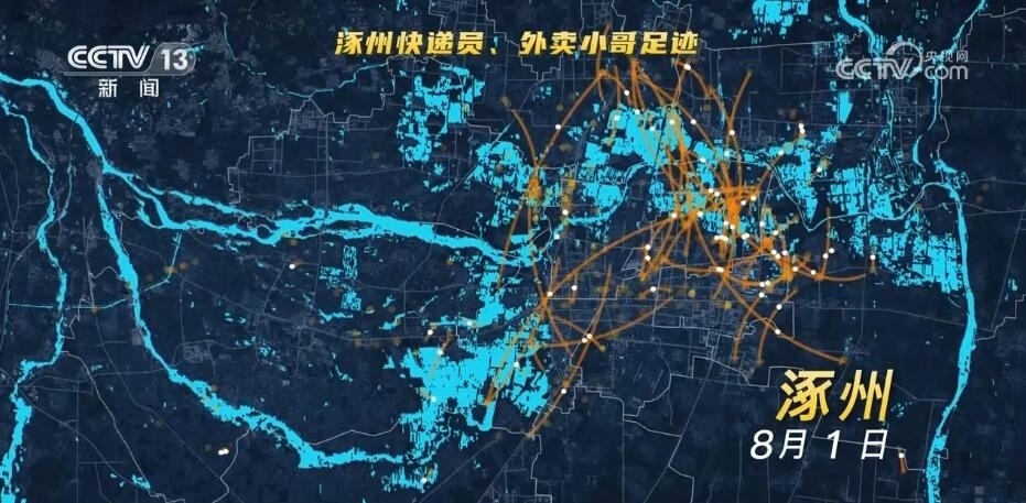 8月1日到8月2日,幾乎在24小時內(nèi),涿州小城就增加了近1.7萬個外地手機信令,尤其有將近1萬人從外省趕到涿州,我們從新聞中看到了來自各地的救援“逆行者”,爭分奪秒地向受災最嚴重的地方挺進。