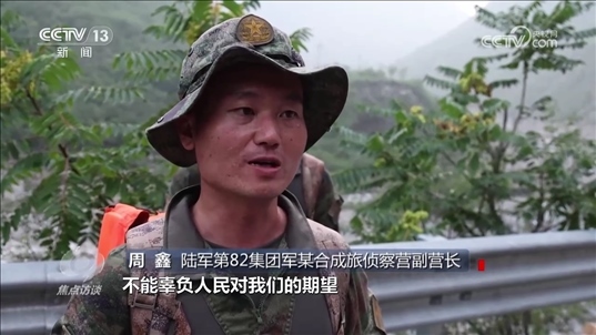 周鑫:“作為人民子弟兵,哪里需要我們,我們就應(yīng)該及時(shí)出現(xiàn)到哪里,不能辜負(fù)人民對(duì)我們的期望?!?/p>