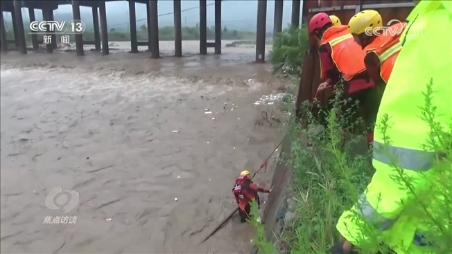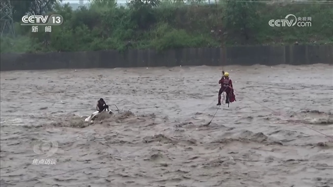 河北武安市南環(huán)東路消防救援站政治指導(dǎo)員田明:“救援人員到達(dá)現(xiàn)場(chǎng)以后,發(fā)現(xiàn)現(xiàn)場(chǎng)情況十分危急,首先是被困車輛和人員處于河道正中央,距兩岸均有50余米,二是水流十分湍急,而且水中雜物很多,嚴(yán)重影響施救。”