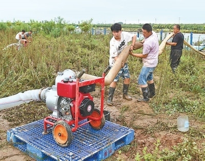 日前,河北省邢臺市南和區(qū)農(nóng)業(yè)農(nóng)村局農(nóng)技推廣員幫助受災養(yǎng)殖戶進行魚塘合理排澇。趙永輝攝(人民視覺)