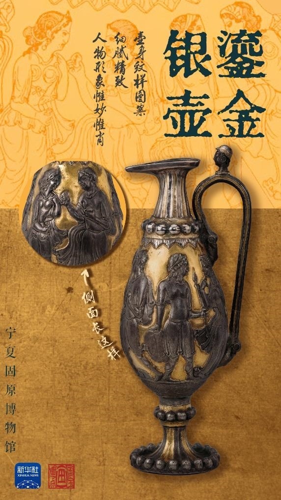 鎏金銀壺有何特殊之處?這件波斯王朝的酒具,是在薩珊時(shí)代的巴克特里亞地區(qū)制造而成,距今已有1500年歷史,壺身上的雕刻以連環(huán)畫的形式講述了希臘神話故事里的內(nèi)容?!蚌探疸y壺整體造型融合了波斯薩珊金銀器風(fēng)格、希臘風(fēng)格和巴克特里亞當(dāng)?shù)卦??!睂幭墓淘┪镳^副館長(zhǎng)張強(qiáng)介紹,在現(xiàn)階段出土文物中,鎏金銀壺不僅在中國(guó)只此一件,在世界現(xiàn)存的薩珊金銀器中亦屬罕見(jiàn)。