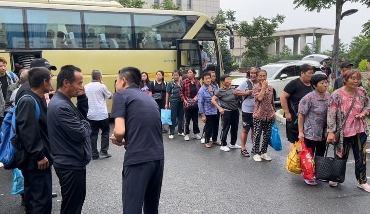 “不著急,慢點(diǎn)兒下,咱這兒有住的、有吃的?!眮?lái)自五常市民樂(lè)鄉(xiāng)的群眾陸續(xù)走下大巴車(chē),已有工作人員等在車(chē)前。