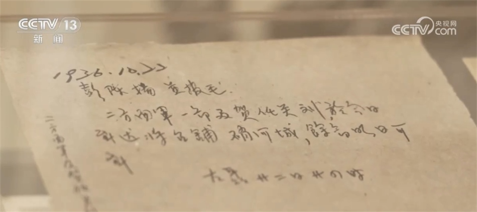 六盤(pán)山紅軍長(zhǎng)征紀(jì)念館館長(zhǎng) 李玲:在我們紀(jì)念館里也陳列展出了一組非常珍貴的、紅軍長(zhǎng)征過(guò)程當(dāng)中的電文,其中有一張就是1936年10月22日,您看在這里,這個(gè)日子也是紅一和紅二方面軍在西吉將臺(tái)堡勝利會(huì)師的日子。