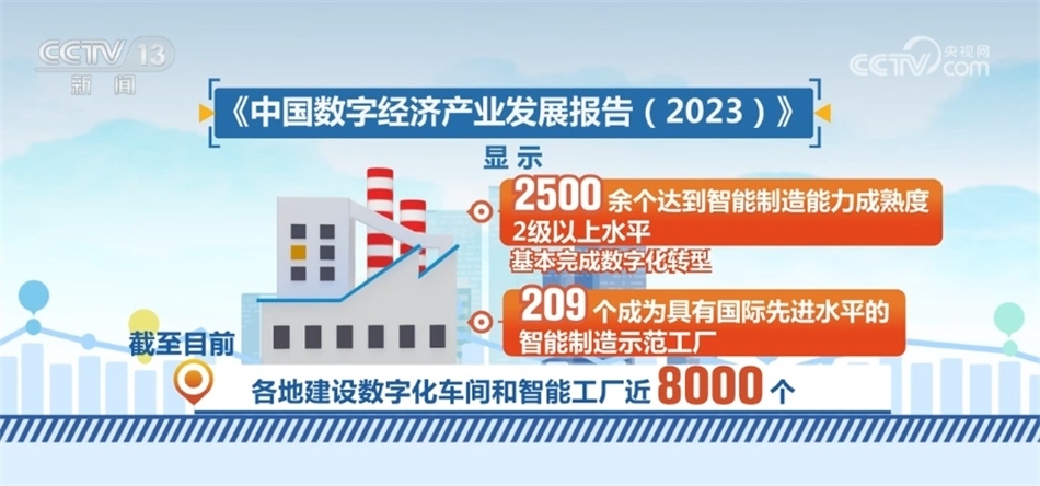 《中國數字經濟產業(yè)發(fā)展報告(2023)》顯示,2017年以前,數字化轉型工具對于服務業(yè)效率提升高于工業(yè)。2018年,隨著工業(yè)互聯網戰(zhàn)略出臺,工業(yè)領域數字經濟的發(fā)展超越了服務業(yè)。截至目前,各地建設數字化車間和智能工廠近8000個,其中,2500余個達到了智能制造能力成熟度2級以上水平,基本完成數字化轉型;209個成為具有國際先進水平的智能制造示范工廠。全國具有一定區(qū)域和行業(yè)影響力的工業(yè)互聯網平臺超過240個,重點平臺連接設備超過8900萬臺套。