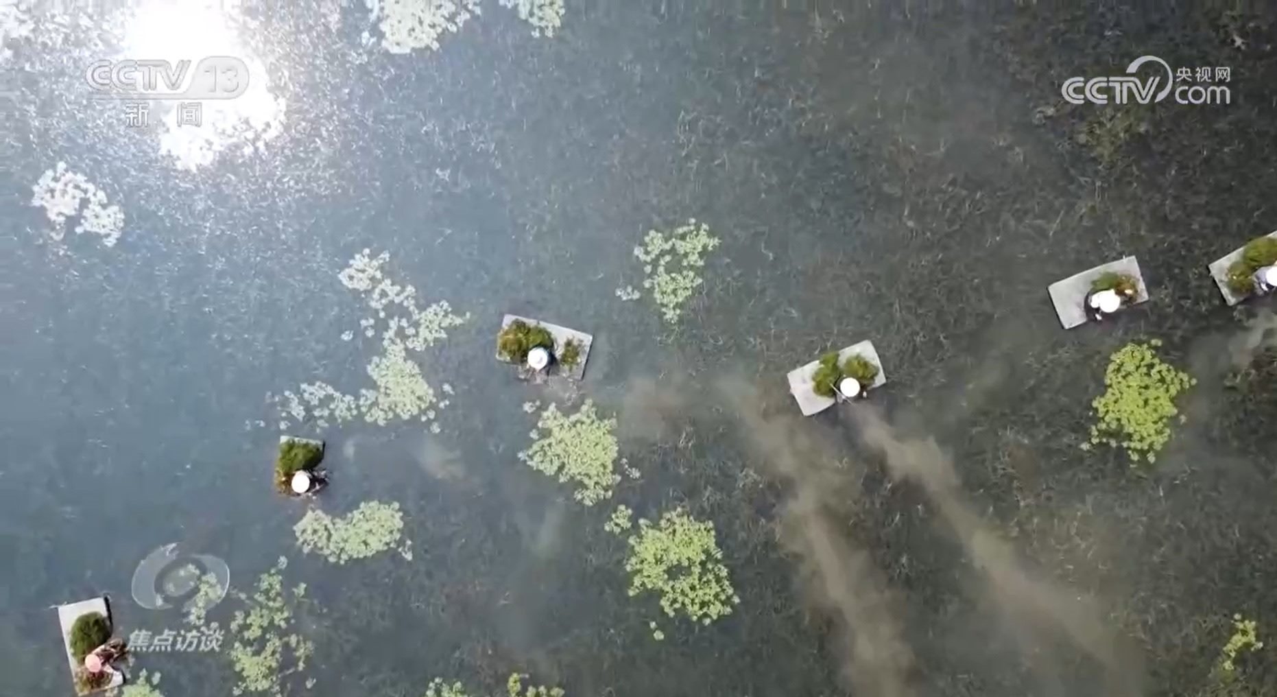 于丹:“采用立體種草,比方說有的深水區(qū)種兩層草,使得整個水層立體空間都有水草分布,另外從深水區(qū)到沿岸帶,沉水植物到浮葉植物到挺水植物到河塘。”