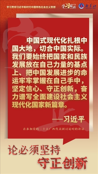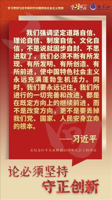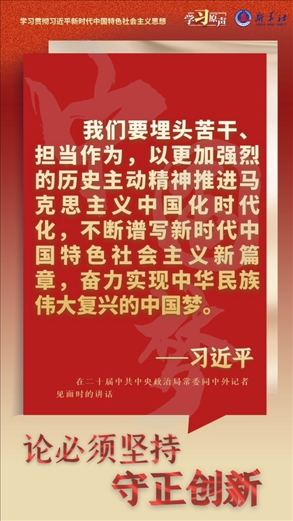 我們從事的是前無古人的偉大事業(yè),守正才能不迷失方向、不犯顛覆性錯誤,創(chuàng)新才能把握時代、引領(lǐng)時代。我們要以科學(xué)的態(tài)度對待科學(xué)、以真理的精神追求真理,堅持馬克思主義基本原理不動搖,堅持黨的全面領(lǐng)導(dǎo)不動搖,堅持中國特色社會主義不動搖,緊跟時代步伐,順應(yīng)實踐發(fā)展,以滿腔熱忱對待一切新生事物,不斷拓展認識的廣度和深度,敢于說前人沒有說過的新話,敢于干前人沒有干過的事情,以新的理論指導(dǎo)新的實踐。