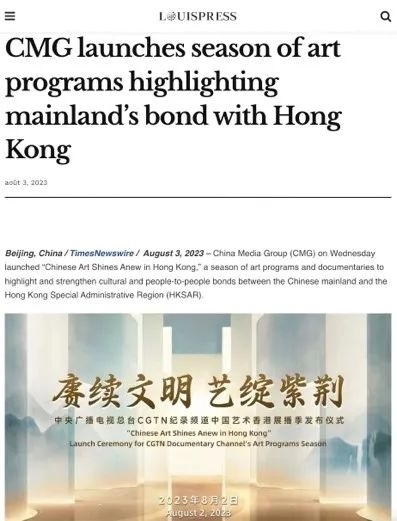 總臺CGTN在官網(wǎng)發(fā)布的《中國藝術(shù)香港展播季 讓觀眾零距離觸摸源遠(yuǎn)流長的中華文明》稿件被來自美國、英國、法國、澳大利亞、韓國、加拿大、意大利等20個(gè)國家和地區(qū)的799家海外主流網(wǎng)絡(luò)媒體轉(zhuǎn)載。美國《國際日報(bào)》《歐洲僑報(bào)》《葡新報(bào)》《非洲時(shí)報(bào)》《委國僑報(bào)》、新西蘭格局傳媒網(wǎng)站、歐僑網(wǎng)和日本華商網(wǎng)等海外華文媒體也以多種形式刊載轉(zhuǎn)發(fā)了相關(guān)報(bào)道。