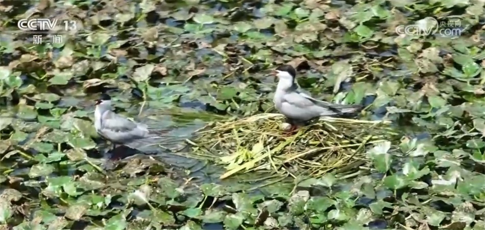 比如,兩地工作人員實(shí)現(xiàn)了聯(lián)合巡河、管護(hù)、治理。元蕩湖生態(tài)岸線的相關(guān)建設(shè),包括我所在的這個(gè)公園和步行橋也是兩地統(tǒng)一審批、接力建設(shè)起來的。目前,元蕩湖水質(zhì)已經(jīng)達(dá)到國家考核目標(biāo),生態(tài)岸線占比超過80%。在湖心的位置有一處水草聚集區(qū)域,船是不會(huì)靠近的,這是人為劃定的水上鳥兒的保育區(qū),能看見不少水鳥在那里嬉戲飛翔。鏡頭拉近,有的鳥兒已經(jīng)在這里筑巢產(chǎn)卵,把家安在了元蕩湖,水質(zhì)好不好,鳥兒最有發(fā)言權(quán)。現(xiàn)在,元蕩湖在水系連通、河道清障、岸坡整治、水源涵養(yǎng)等方面實(shí)現(xiàn)了統(tǒng)一推進(jìn)。