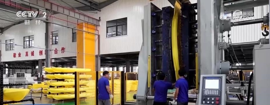 在浙江慈溪的一家皮劃艇企業(yè),記者看到,一條皮劃艇的吹塑生產(chǎn)線正在運轉。和傳統(tǒng)的滾塑不同,吹塑工藝成型更快、效率更高。6分鐘左右,一條吹塑皮劃艇可基本成型。
