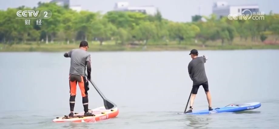除此之外,不少市民會選擇專門的機構,體驗更為多樣的水上運動。在浙江臨安的一家水上運動中心,既可以體驗摩托艇零到近百碼的動力加速度,也可以站在槳板上,悠然地穿梭于湖泊之上。運動中心負責人告訴記者,目前機構包括水上摩托、尾波沖浪、槳板等11個水上項目。
