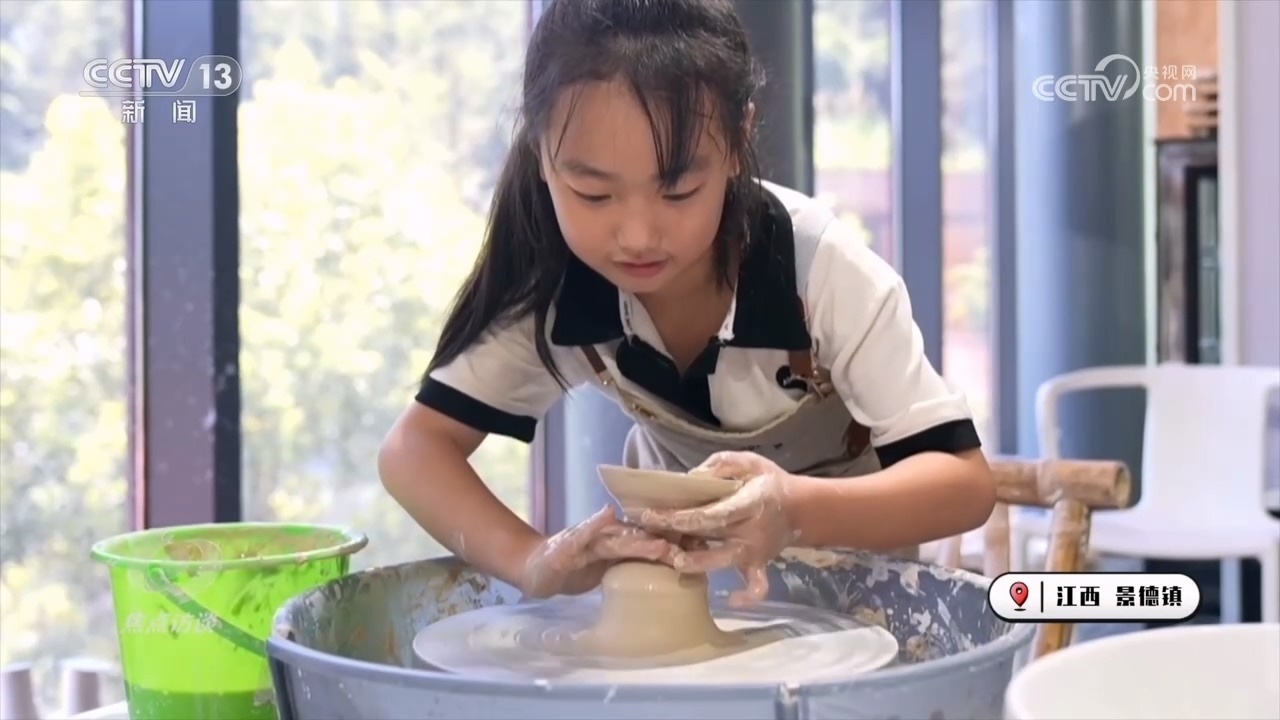 在景德鎮(zhèn)的一家陶瓷工坊,老師正在認(rèn)真講解制作技藝。不過,看起來容易做起來難,大公雞到了自己手里就捏成了個(gè)四不像。還是小朋友厲害,小茶碗捏得有模有樣。周曉雷來自湖北武漢,這個(gè)暑假她特意帶孩子來景德鎮(zhèn)住一周,想讓孩子了解和體驗(yàn)陶瓷制作這門非遺文化。