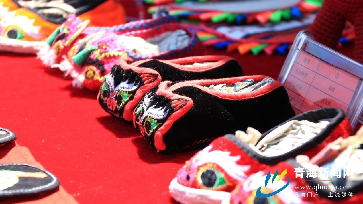 村民將自己繡的民族風格產(chǎn)品在村路兩旁展覽銷售。謝青玉 攝