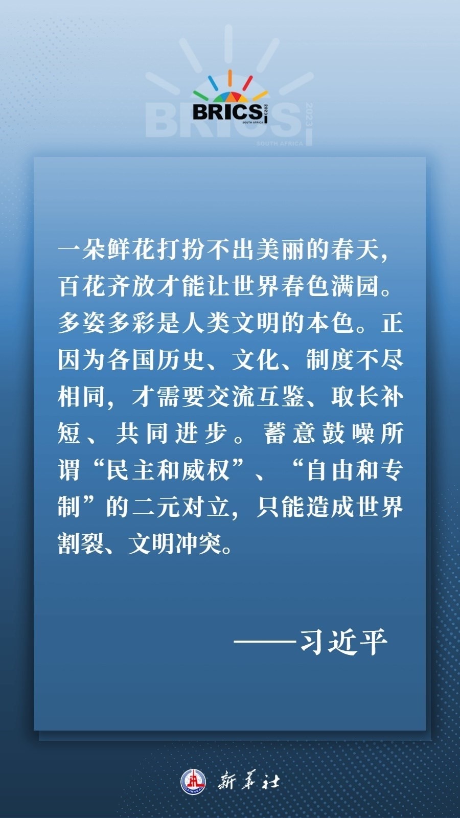 當?shù)貢r間8月22日下午,國家主席習近平向約翰內(nèi)斯堡金磚國家工商論壇閉幕式發(fā)表致辭,為各國深化團結(jié)合作、應對風險挑戰(zhàn)、共建更加美好的世界指明方向——