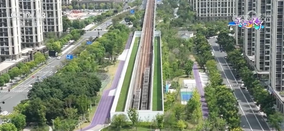 來到杭州臨平區(qū)的豐彩運(yùn)動公園,公園形似一個“彩虹大吉他”,穿梭其間的地鐵宛若“琴弦”撥動。