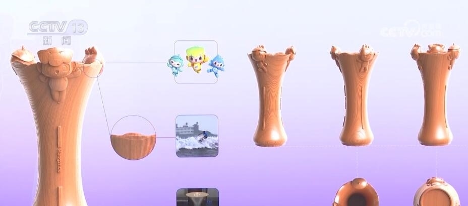 頒獎(jiǎng)托盤設(shè)計(jì)靈感則來(lái)源于微風(fēng)中波動(dòng)的西湖水面,結(jié)合本屆亞運(yùn)會(huì)核心圖形“潤(rùn)澤”中的飄逸絲帶意向,整體給人流動(dòng)之感。