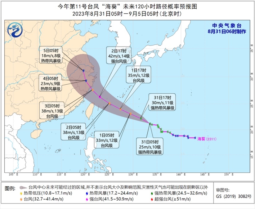 預(yù)計(jì),“蘇拉”將以每小時(shí)10公里左右的速度向西北方向移動(dòng),逐漸向廣東東部一帶沿??拷瑥?qiáng)度緩慢減弱,并將于9月1日下午至夜間在廣東惠來到香港一帶沿海登陸(強(qiáng)臺(tái)風(fēng)級(jí)或超強(qiáng)臺(tái)風(fēng)級(jí),45~52米/秒,14~16級(jí)),也有可能在廣東東部近岸海面向西偏南方向移動(dòng)。中央氣象臺(tái)今晨升級(jí)發(fā)布臺(tái)風(fēng)紅色預(yù)警。