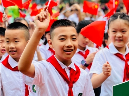 重慶樹人景瑞小學(xué)的孩子們參加以愛國(guó)為主題的“開學(xué)第一課”。(重慶樹人景瑞小學(xué)供圖)