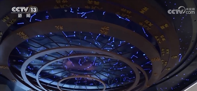 總臺記者 孫銳:一走進浙江省非物質(zhì)文化遺產(chǎn)館,我們就能看到,在天花板上懸掛著這樣一個特殊的大鐘表。它是以北斗星為指針,以24節(jié)氣為刻度。同時,在地上還投影有當下的節(jié)氣,比如說現(xiàn)在顯示的就是剛剛過去的處暑節(jié)氣。二十四節(jié)氣項目也是人類非物質(zhì)文化遺產(chǎn),它指引著我們按照時令來賞景、品美食。現(xiàn)在我們就從這個節(jié)氣裝置出發(fā),一起走進非遺館里的“中國時間”。