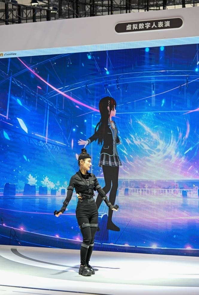 在中國電信股份有限公司天津分公司展臺,真人舞者身穿智能裝備,每做一個舞蹈動作巨型屏幕上的數(shù)字人都能實時精準(zhǔn)再現(xiàn),就連舞者的面部表情都可以精準(zhǔn)模仿……目前,由真人扮演驅(qū)動或人工智能驅(qū)動的數(shù)字人已被中國旅游行業(yè)廣泛應(yīng)用。
